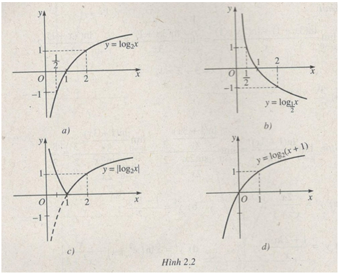 c) \(y = \left| {{{\log }_2}x} \right|\)                        d) \(y = {\log _2}\left( {x + 1} \right)\)