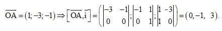 \( \Rightarrow d\left( {A;Ox} \right) = {{\left| {\left[ {\overrightarrow {OA} ,\overrightarrow i } \right]} \right|} \over {\left| {\overrightarrow i } \right|}} = {{\sqrt {{0^2} + {{\left( { – 1} \right)}^2} + {{\left( { 3} \right)}^2}} } \over {\sqrt {{1^2} + {0^2} + {0^2}} }} = \sqrt {10} .\)