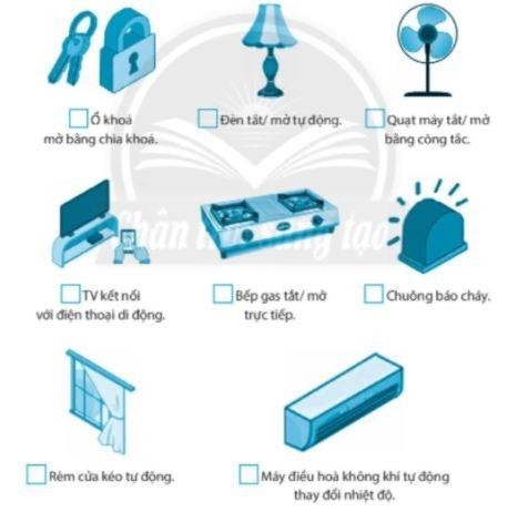 Đánh dấu √ vào ô trống trước những đồ dùng phù hợp với ngôi nhà thông minh