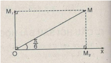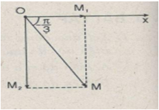 Và  \(\tan \varphi = – {{O{M_2}} \over {O{M_1}}} = – 1,73\Rightarrow \varphi = – {\pi \over 3}.\)