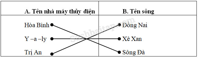 Nối tên nhà máy thủy điện với tên sông có nhà máy thủy điện đó.