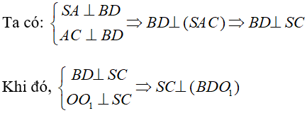 Gọi O là giao điểm của AC và BD. Trong mặt phẳng (SAC) kẻ OO1 vuông góc với SC.