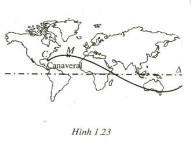 Giả sử một con tàu vũ trụ được phóng lên từ mũi Ca-na-vơ-ran (Canaveral) ở Mĩ. Nó chuyển động theo một quỹ đạo được mô tả trên một bản đồ phẳng (quanh đường xích đạo) của mặt đất