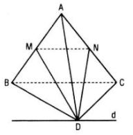 Cho hình tứ diện ABCD. Gọi M, N lần lượt là trung điểm của các cạnh AB và AC a. Xét vị trí tương đối của đường thẳng MN và mp(BCD) b. Gọi d là giao tuyến của hai mặt phẳng (DMN) và (DBC). Xét vị trí tương đối của d và mp(ABC)