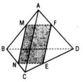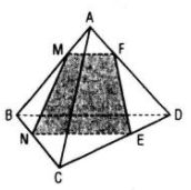 Có thể cắt tứ diện bằng một mặt phẳng để thiết diện là hình thang, ví dụ như mặt phẳng đi qua M, N (M, N là hai điểm lần lượt nằm trên hai cạnh AB, BC) và song song với BD