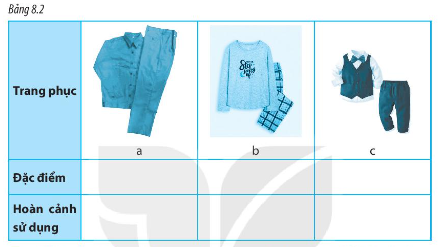 Sử dụng các cụm từ sau để mô tả đặc điểm các bộ trang phục trong Bảng 8.2 và cho biết hoàn cảnh sử dụng chúng