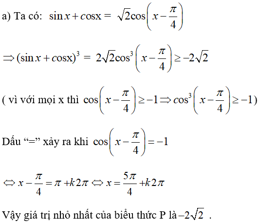 Tìm giá trị nhỏ nhất của biểu thức \(P\left( x \right) = {\left( {\sin x + \cos x} \right)^3}\)