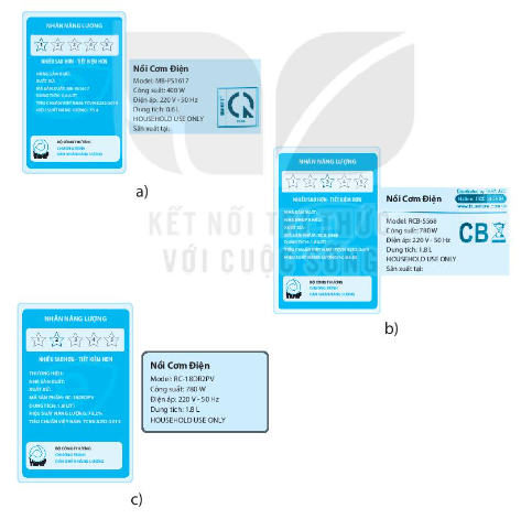 – Nồi cơm điện ở hình b và hình c có cùng dung tích những loại nồi ở hình b có khả năng tiết kiệm điện tốt hơn (Nhãn tiết kiệm năng lượng đạt 3 sao)
