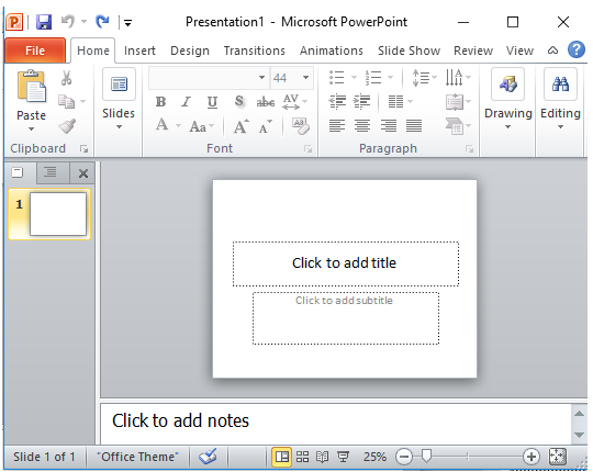 Hãy khởi động phần mềm trình chiếu PowerPoint và quan sát trang chiếu được tạo ra…