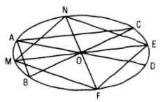 Theo bài 44, vẽ tam giác ABC là hình biểu diễn của một tam giác vuông nội tiếp trong một đường tròn. Qua O ta kẻ hai dây ME và NF của elip lần lượt song song với AC và AB. Khi đó tứ giác MNEF là hình biểu diễn của một hình vuông nội tiếp trong một đường tròn.