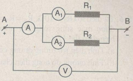 Cho mạch điện có sơ đồ hình 5.3, trong đó R1=20Ω, R2=30Ω, ampe kế chỉ 1,2A. Tính số chỉ của các ampe kế A1 và A2.