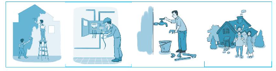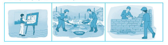 Dựa vào những hình sau, hãy tưởng tượng và viết câu chuyện về quá trình xây dựng ngôi nhà của một gia đình