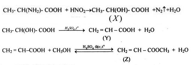 \(C{H_3}CH(N{H_2})COOH\buildrel {HN{O_2}} \over