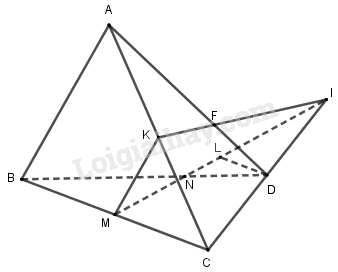 Trong mp\(\left( {ACD} \right)\), gọi \(F = KI \cap AD\) \( \Rightarrow F \in AD,F \in KI \subset \left( {KMN} \right)\).