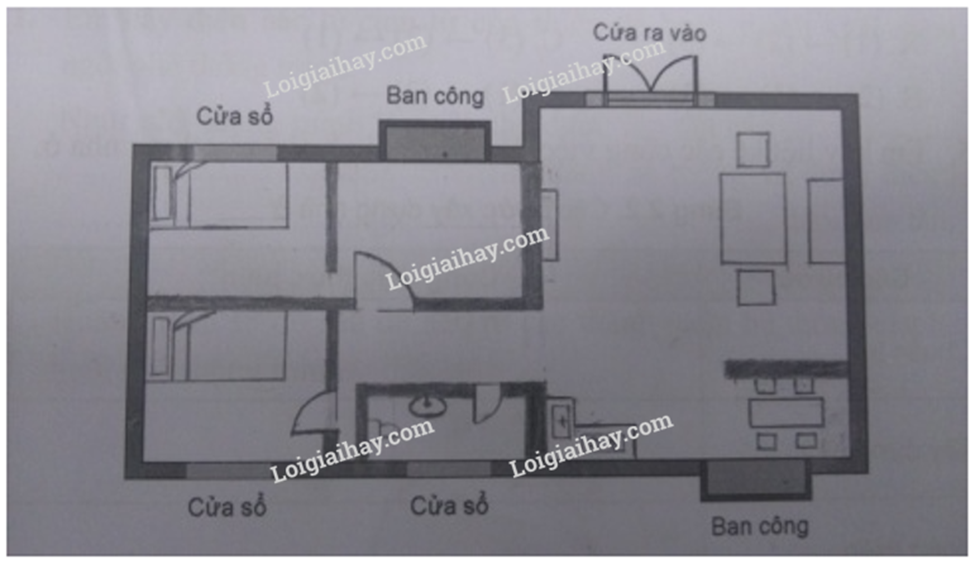 Giả sử em có một diện tích (như dưới đây). Hãy thiết kế, bố trí các phòng (khu vực) độc lập hoặc kết hợp để thuận lợi cho việc sinh hoạt, học tập và nghỉ ngơi.