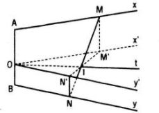 Vậy \({{IM’} \over {IN’}} = {{OM’} \over {ON’}} = k.\) Từ đó suy ra I phải nằm trên tia phân giác Ot của góc x’Oy’.