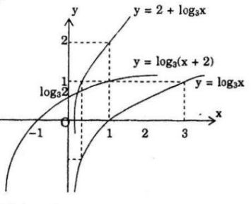 Vẽ đồ thị hàm số y = log3x. Từ đó suy ra đồ thị của hàm số y = 2 + log3x và đồ thị của hàm số y = log3(x + 2)