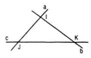 \(\begin{array}{l}I = a \cap b \Rightarrow I \in b \subset \left( P \right)\\J = a \cap c \Rightarrow J \in c \subset \left( P \right)\end{array}\)