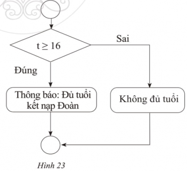Học sinh cấp trung học bắt đầu được xét kết nạp Đoàn khi đủ 16 tuổi. Hãy dùng cấu trúc rẽ nhánh để mô tả thuật toán kiểm tra điều kiện kết nạp Đoàn bằng cách liệt kê các bước hoặc sơ đồ khối.