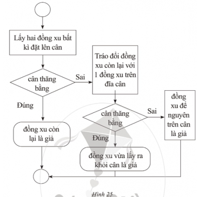 1) Thuật toán: Sử dụng cân thăng bằng tìm đồng xu giả (Hình 25).