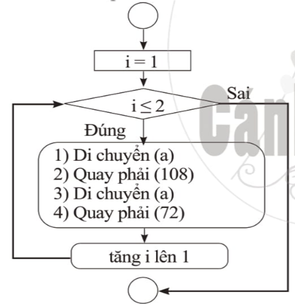 – ii) Di chuyển (a); Quay phải (72) {góc bù của 108 độ}