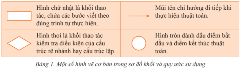 Hãy chọn trong các cụm từ: hình tròn, hình chữ nhật, hình thoi, mũi tên cụm từ thích hợp để điền vào chỗ chấm (…) trong các câu sau khi nói về sơ đồ khối mô tả thuật toán