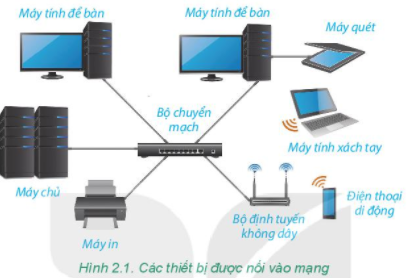 b) Các thiết bị kết nối là: bộ chuyển mạch, bộ định tuyến không dây, đường truyền.