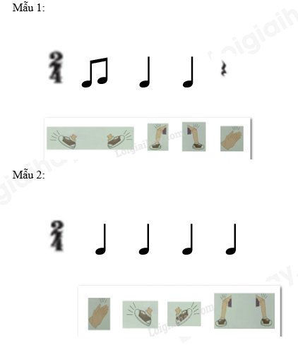 Sáng tạo hai mẫu tiết tấu, sau đó thực hiện vận động cơ thể với các động tác sau: