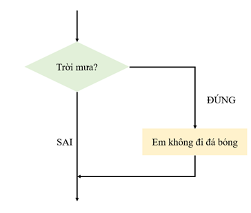 Câu “Nếu trời mưa thì em không đi đá bóng” có chứa cấu trúc nào? Em hãy mô tả câu này bằng sơ đồ khối.