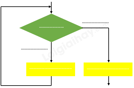 b) Hình 6.10 là sơ đồ khối mô tả thuật toán thực hiện yêu cầu của bạn Khoa. Em hãy vẽ sơ đồ khối đó vào vở và điền các bước để hoàn thành sơ đồ khối.