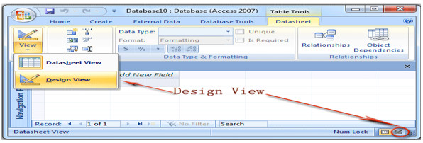 1. Chế độ thiết kế (Design View): Dùng để tạo mới hoặc thay đổi cấu trúc bảng, mẫu hỏi, thay đổi cách trình bày và định dạng biểu mẫu, báo cáo.