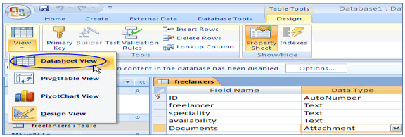 2. Chế độ trang dữ liệu (Datasheet View): Dùng để hiển thị dữ liệu dạng bảng, cho phép xem, xóa hoặc thay đổi dữ liệu đã có.