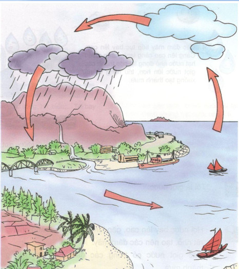 Chỉ vào sơ đồ và nói về sự bay hơi, ngưng tụ của nước trong tự nhiên