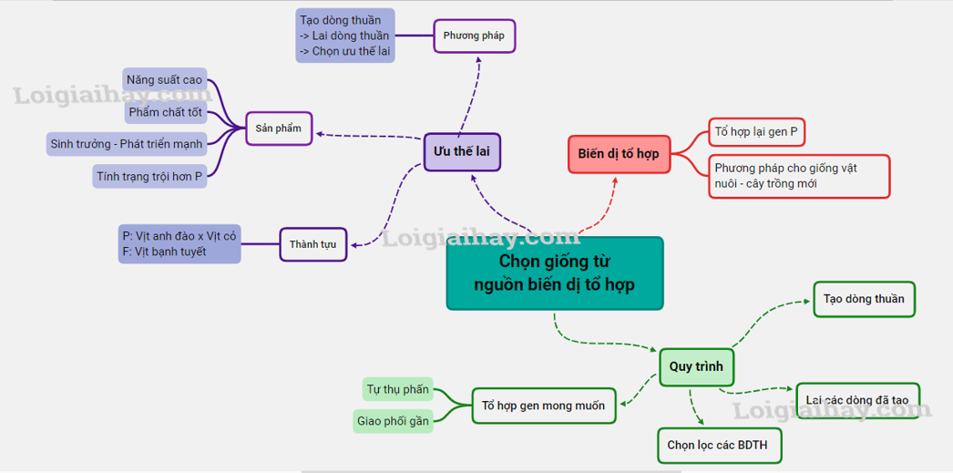 Sơ đồ tư duy Chọn giống vật nuôi và cây trồng dựa trên nguồn biến dị tổ hợp: