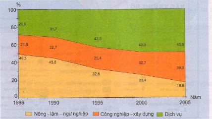 Hình 33.2 Chuyển dịch cơ cấu kinh tế theo ngành ở Đồng bằng sông Hồng
