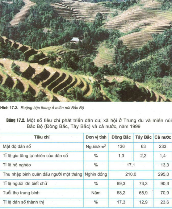 + Trình độ dân cư, xã hội có sự chênh lệch giữa vùng Đông Bắc với Tây Bắc.