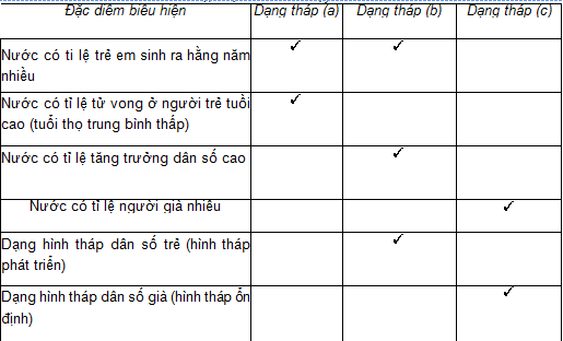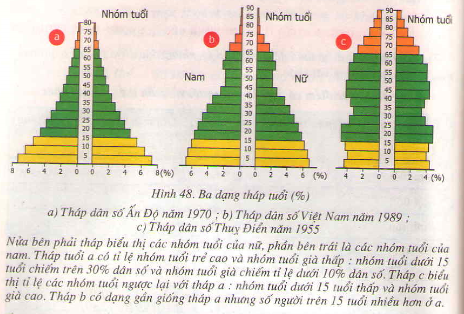 Bảng 48.2: Các biểu hiện ở 3 dạng tháp tuổi