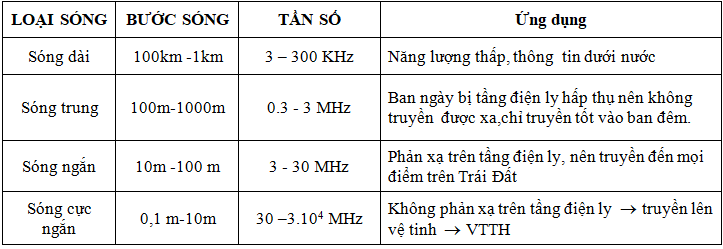 – Sóng điện từ có bước sóng từ vài mét đến vài kilômét được dùng trong thông tin liên lạc vô tuyến và được gọi là sóng vô tuyến.
