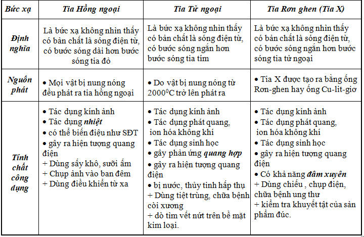 VI. Các loại Tia (bức xạ) không nhìn thấy