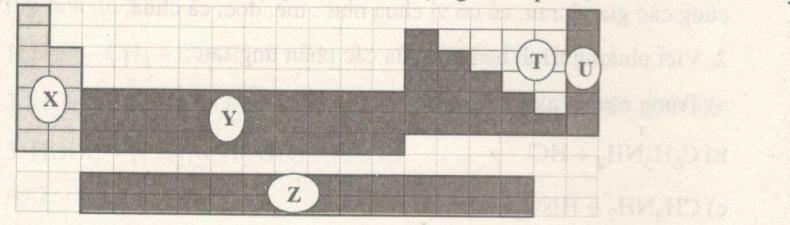 X là các kim loại kiềm, Z là các kim loại họ Lantan và Actini, Y gồm các kim loại chuyển tiếp và các kim loại p. T là các kim loại, U là khí hiếm.