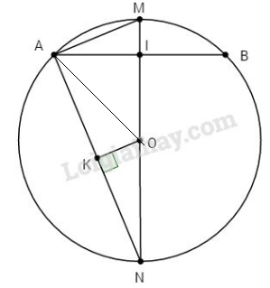 \(OI = \sqrt {A{O^2} – A{I^2}}  = \sqrt {{5^2} – {3^2}}  \)\(\;= 4\,\left( {cm} \right)\) (định lí Pi-ta-go)