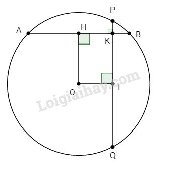 Kẻ \(OI ⊥ PQ\), khi đó tứ giác OHKI là hình chữ nhật có hai cạnh kề \(OH = KH = 6\;(cm)\) nên là hình vuông.
