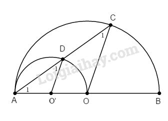 Cho nửa đường tròn tâm O, đường kính AB. Trên cùng nửa mặt phẳng bờ là AB, vẽ nửa đường tròn tâm O’ đường kính OA. Vẽ dây cung AC của (O) cắt nửa đường tròn (O’) tại D. Chứng minh: