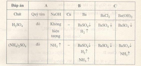 Câu 7. Nhóm nào sau đây chứa các hóa chất mà mỗi chất đều có thể phân biệt được dung dịch \({H_2}S{O_4}\) loãng và dung dịch \({(N{H_4})_2}S{O_4}\) bão hòa?