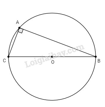 Ta có: AB ⊥ AC (gt) nên ∆ABC là tam giác vuông nội tiếp đường tròn (O). Do đó BC là đường kính của đường tròn (O) nên BC đi qua O. Hay ba điểm B, O, C thẳng hàng.