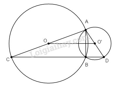 b. Vẽ đường kính AC của (O) và AD của (O’). Chứng minh ba điểm C, B, D thẳng hàng.