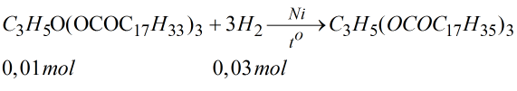 Câu 8. Khối lượng hiđro cần để hiđro hóa hoàn toàn 8,840 gam glixerol trioleat (C3H5(OOCC17H33)3)  là