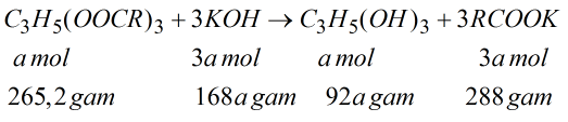 Chất béo + 3NaOH \( \to \) muối +C3H5(OH)3