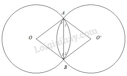 Mặt khác các tam giác AOB và AO’B có hai góc ở đỉnh bằng nhau nên bốn góc ở đáy cũng bằng nhau : \(\widehat {{A_1}} = \widehat {{A_2}} = \widehat {{B_1}} = \widehat {{B_2}}\)