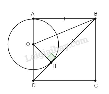 Cho hình vuông ABCD. Trên đường chéo BD lấy \(BH = BA\) (H nằm giữa hai điểm B và D). Qua H kẻ đường thẳng vuông góc với BD và đường này cắt AD tại O.